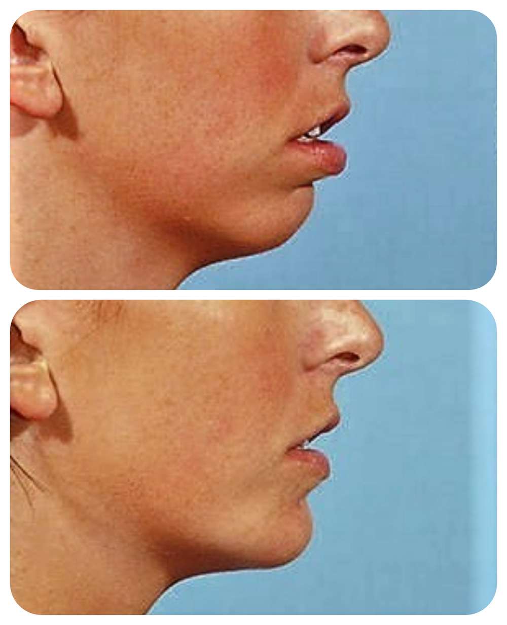 Το μικρό πηγούνι διορθώνεται με την τοποθέτηση ενθέματος σιλικόνης, το οποίο διατίθεται σε διάφορα μεγέθη.